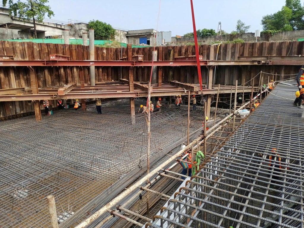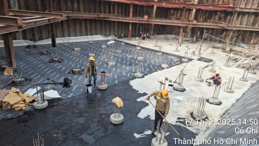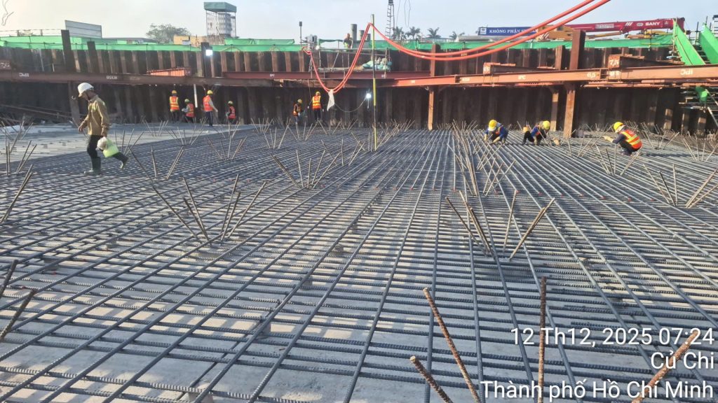 – Hoàn thiện coppha, cọc thép đáy móng (700 tấn sắt):