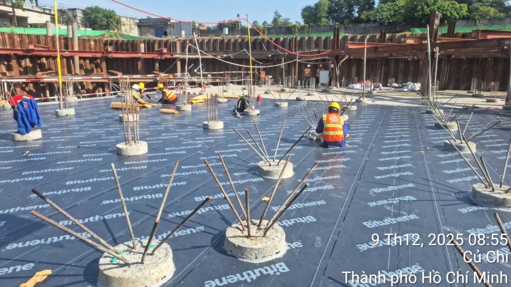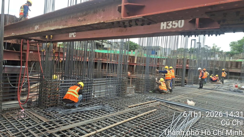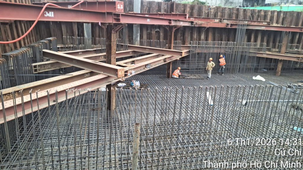– Hoàn thiện coppha, cọc thép đáy móng (700 tấn sắt):