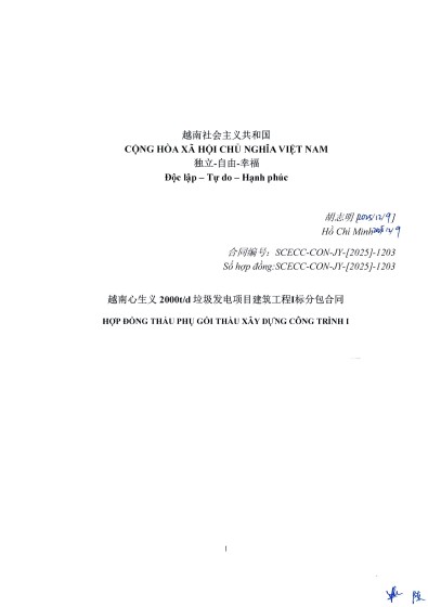 Tên dự án: Gói thầu xây dựng công trình 1 dự án Nhà máy điện rác 2000t/d Tâm Sinh Nghĩa – Việt Nam